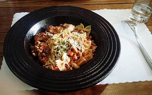 我的波隆那肉醬蝴蝶麵↓↓配有吵才有的巴斯克雞切塊